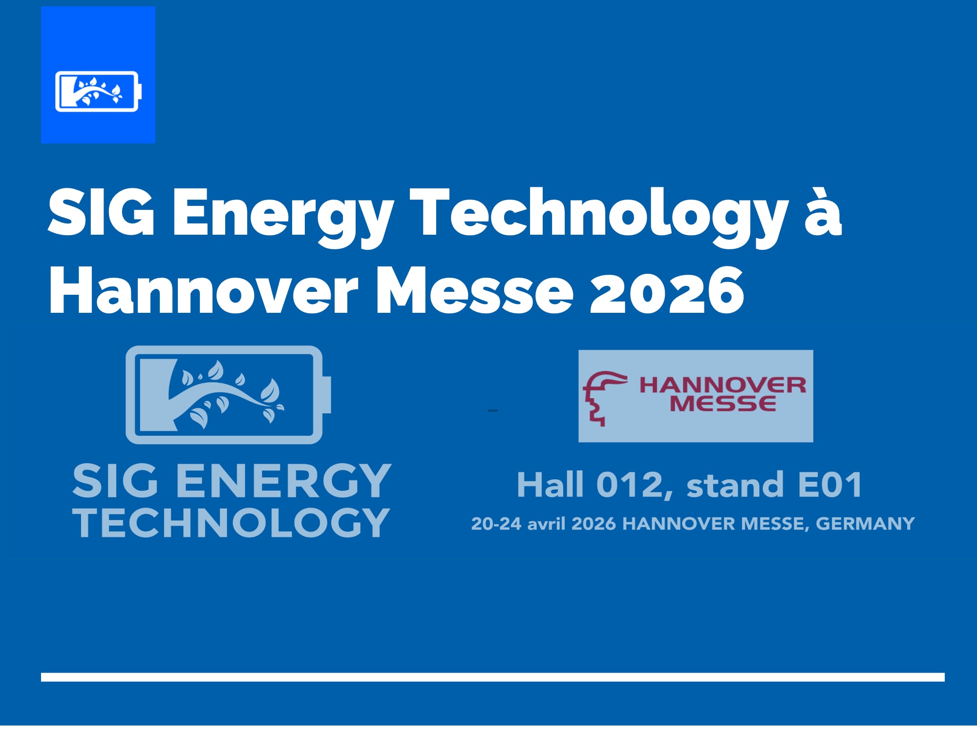 Retrouvez l'équipe de SIG Energy Technology à Hannover du 20 au 24 avril 2026 pour l'édition annuelle de Hannover Messe.